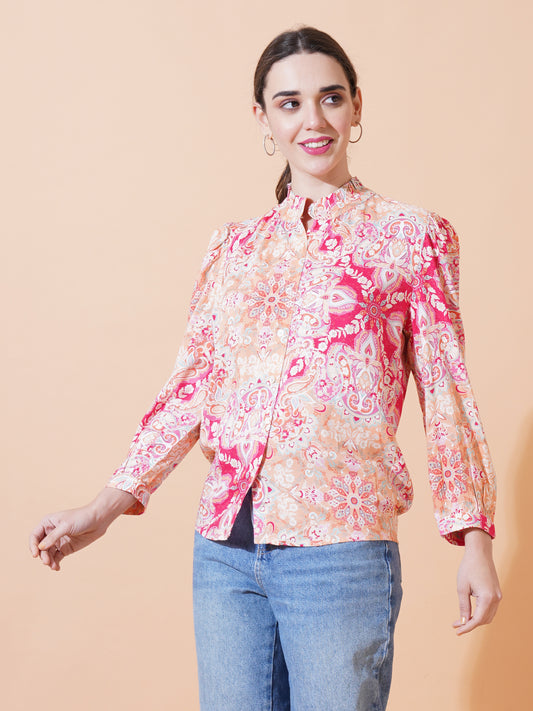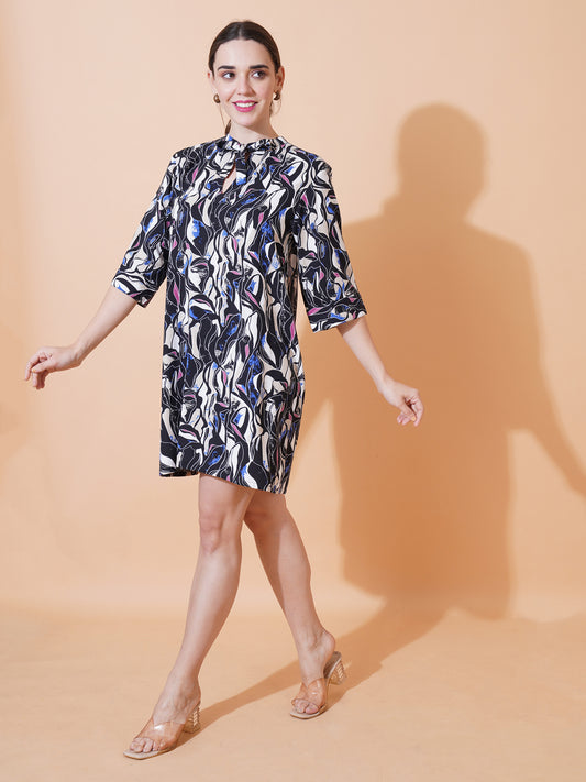Womens Casual Shirt Dress With Front Button and Puff Sleeves